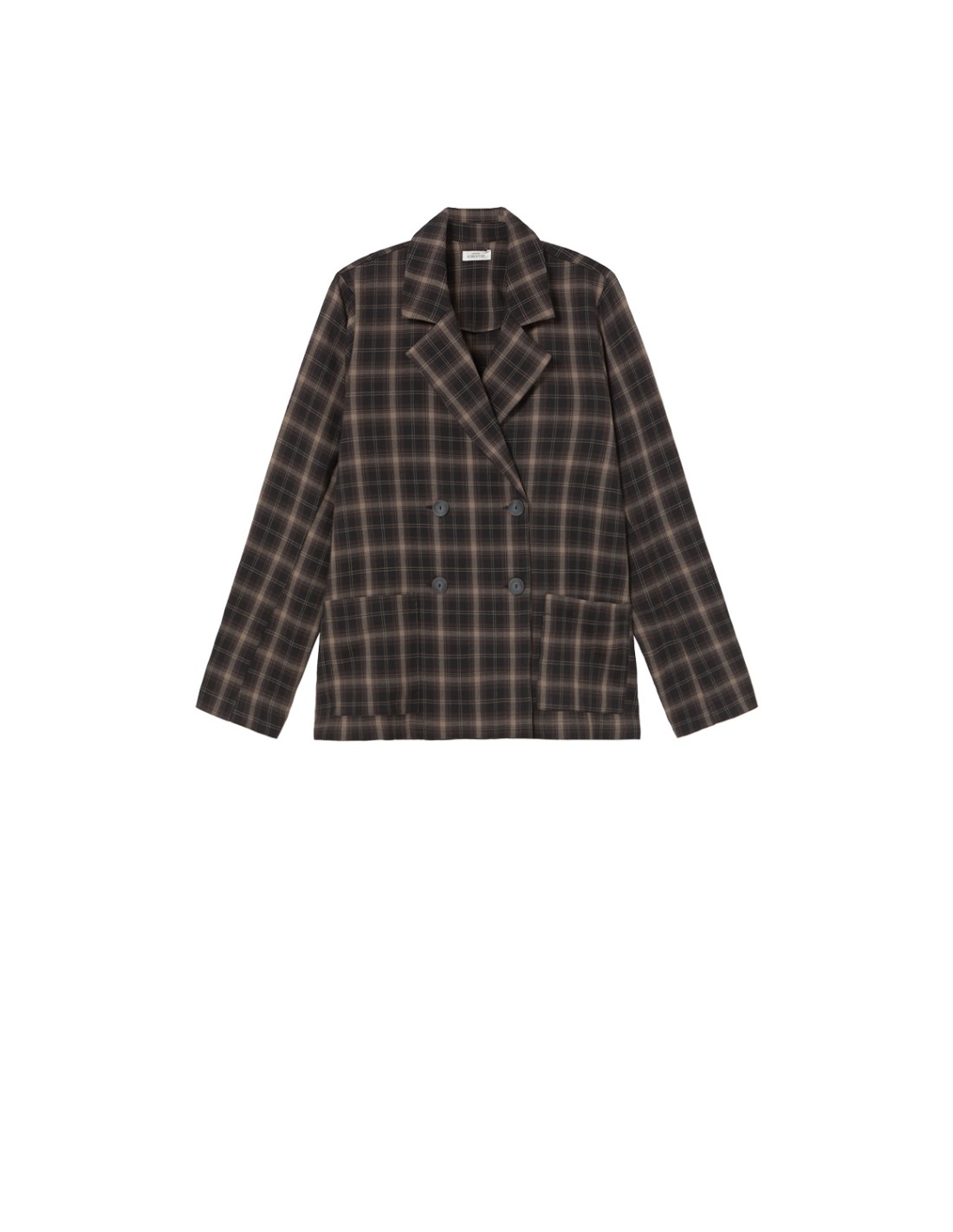 Americana de cuadros con doble botonadura y cuello con solapa. Combínala con el pantalón Dalston para un look sofisticado.