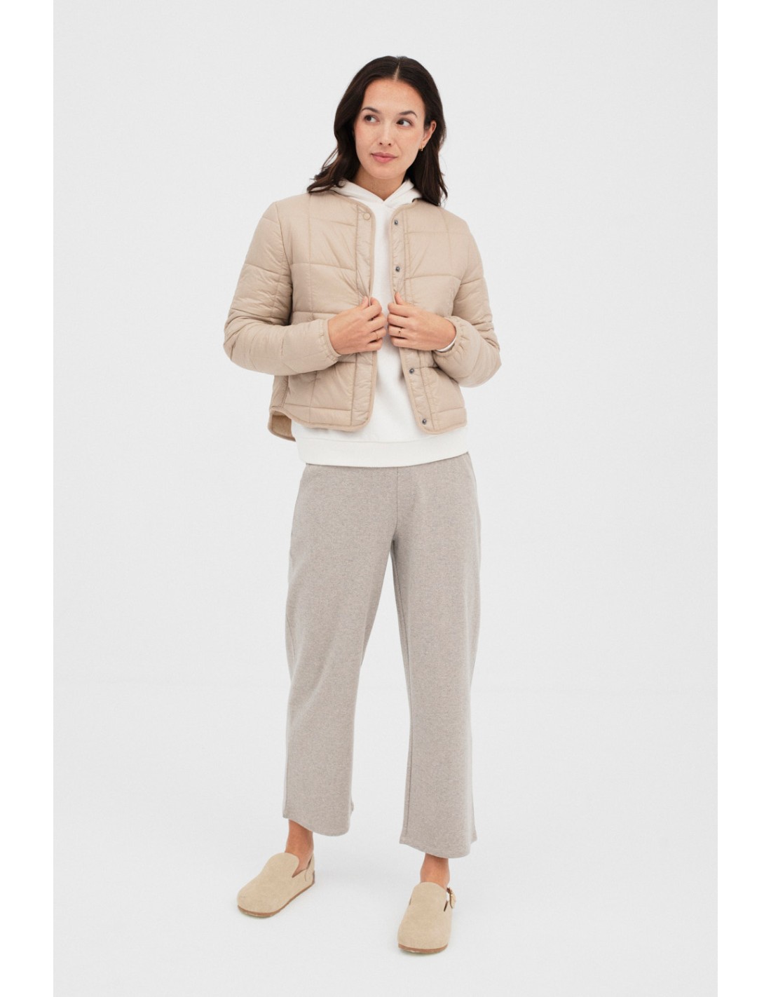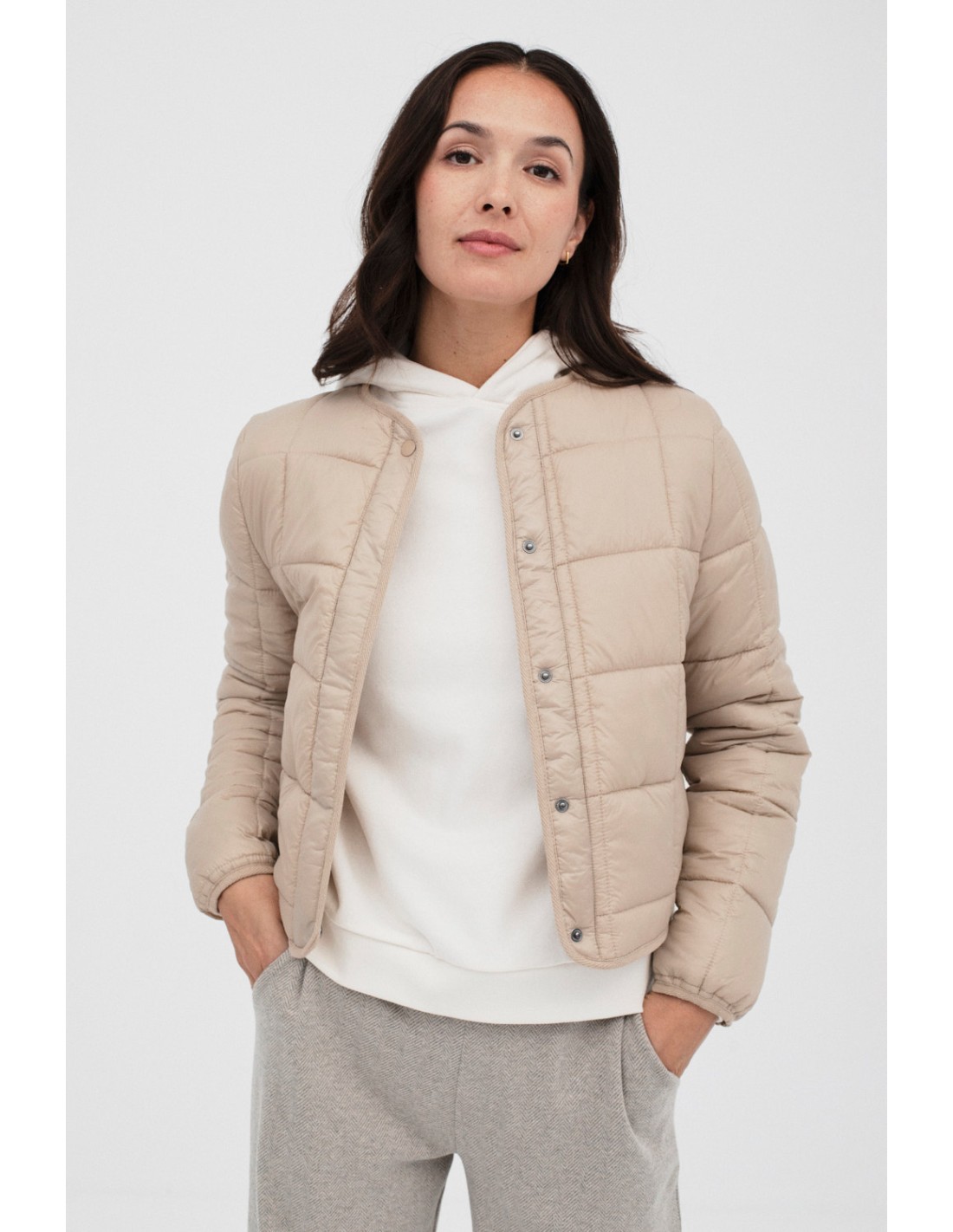 Chaqueta acolchada con diseño a cuadros, bolsillos discretos en los laterales y cierre a presión con botones. Moderna y funcional, perfecta para abrigarte en cualquier ocasión. Combina con el bolso Corts.