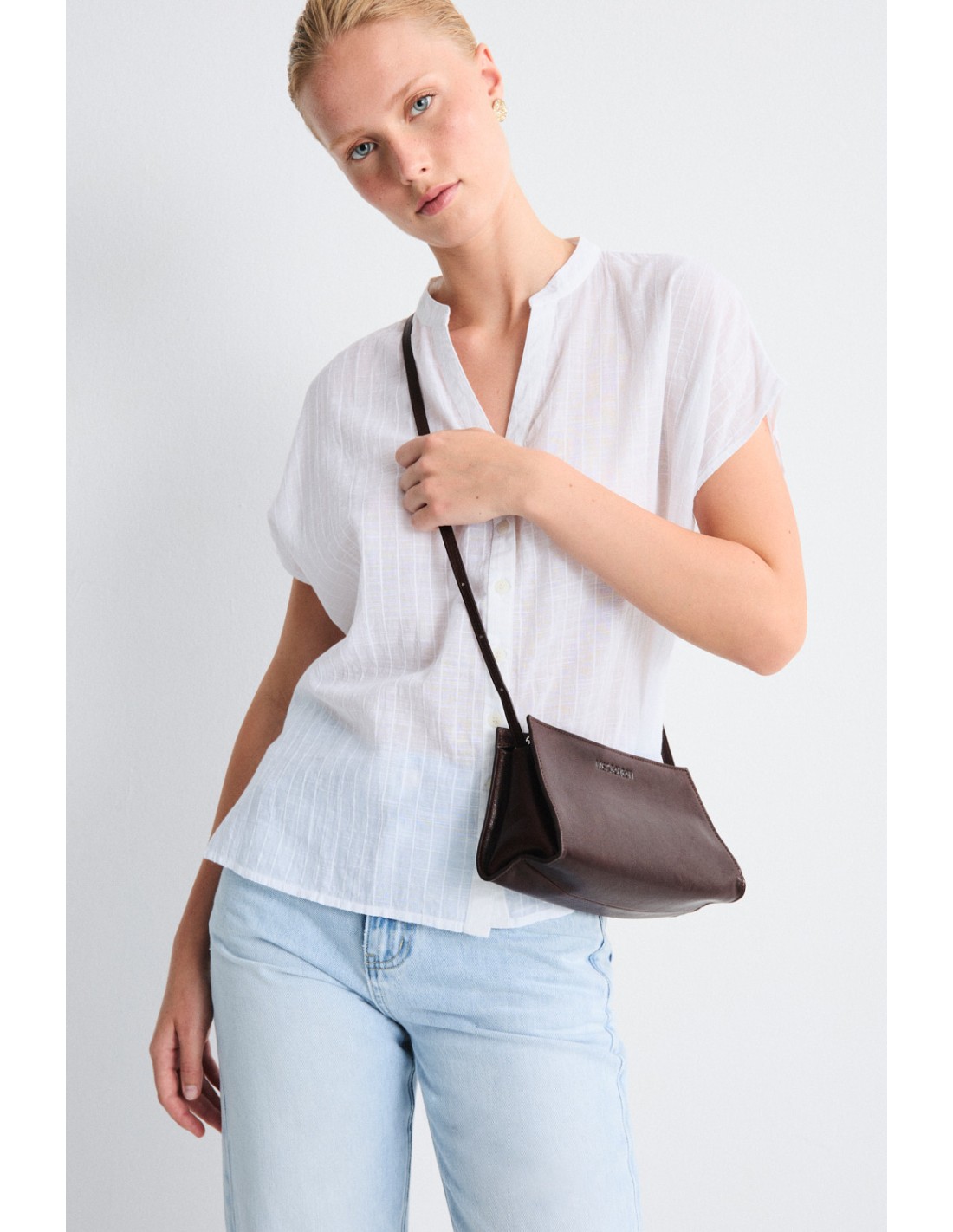 Bolso pequeño de piel con logo grabado y cierre de cremallera. Un diseño elegante y versátil, ideal para cualquier ocasión.