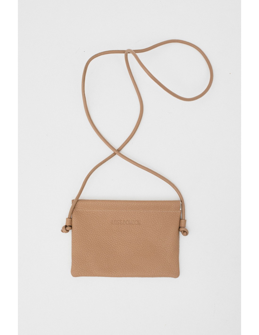 Bolso mini de piel con asa larga regulable y cierre magnético. Tiene el logo de Mus&Bombon grabado en el exterior. El bolso perfecto para llevar lo indespensable para tu día a día.