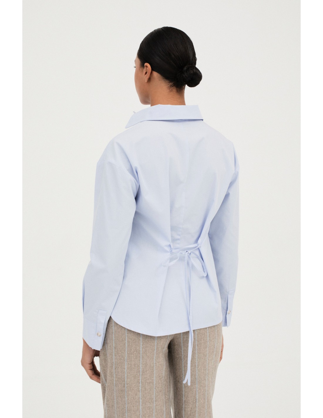 La camisa oversize Richmond de manga larga con botón en puño. Destaca por su lazada en la espalda, dandóle un toque chic.