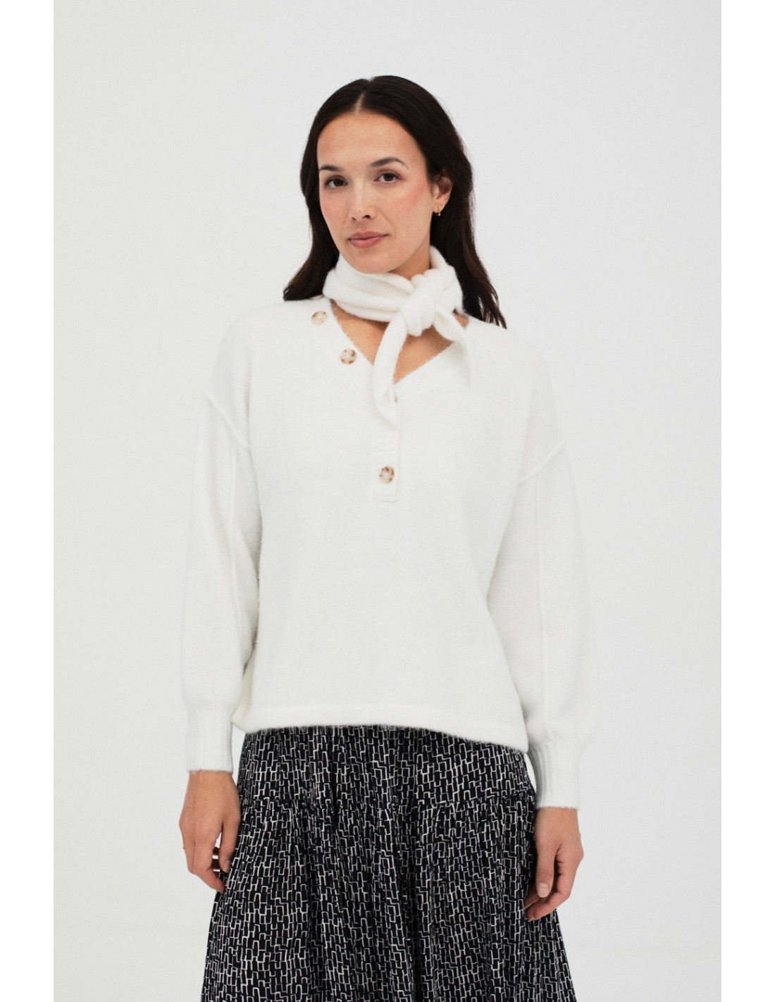 Bufanda de punto en forma triangular, ideal para un look cómodo y elegante. Combina a la perfección con los jerséis Jaco, Alajuela, Lujan.