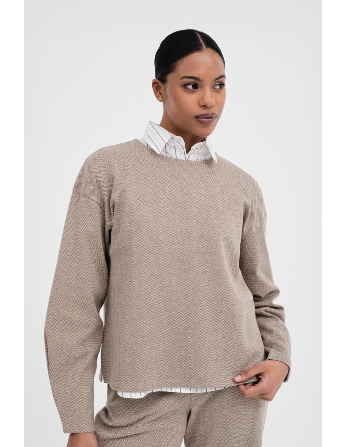 La sudadera Katong con jacquard de espiga, cuenta con un diseño moderno con cuello caja, mangas abullonadas y pliegues delicados. Combínala con los pantalones Koreg.