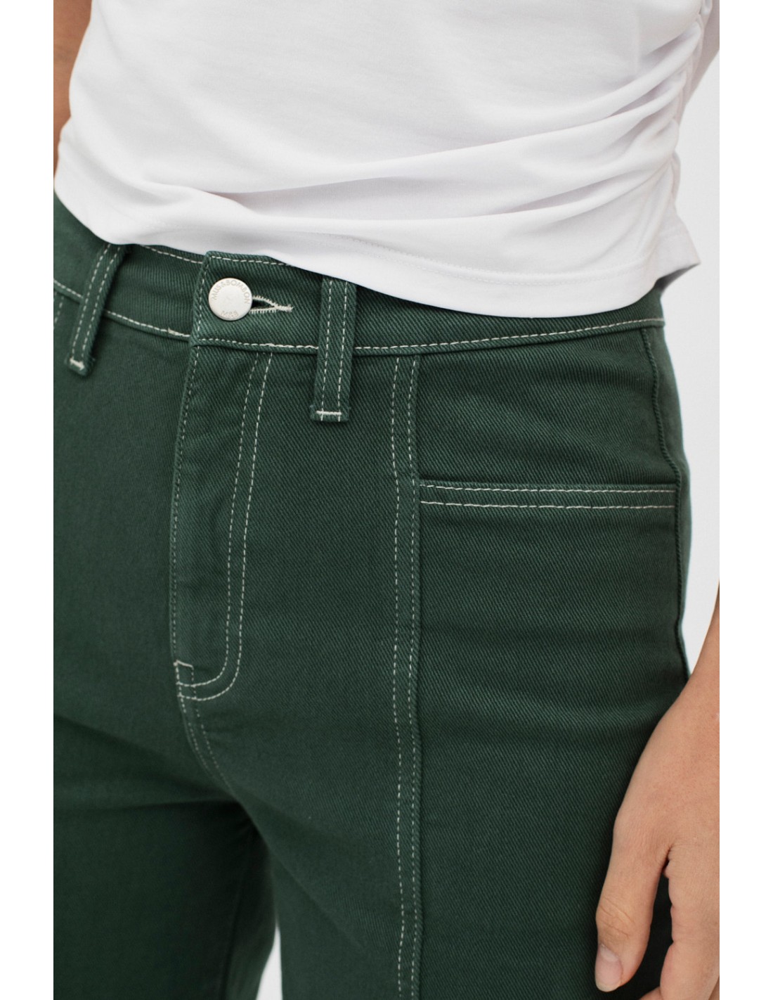 Valby es un pantalón de tiro alto y corte ancho, con costuras centrales y pespuntes a contraste. Destaca por su ajuste elegante y moderno.