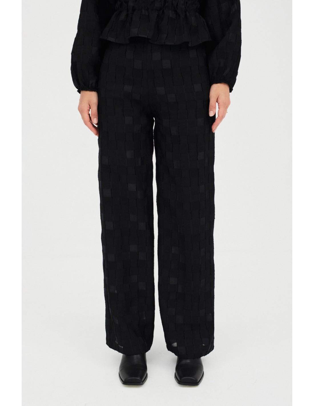 Un pantalón de jacquard de cuadros que destaca por su diseño elegante. Cuenta una cremallera invisible, cintura con goma plana en la parte trasera y está forrado para mayor comodidad. Combina con blusa Manhattan para el total look.