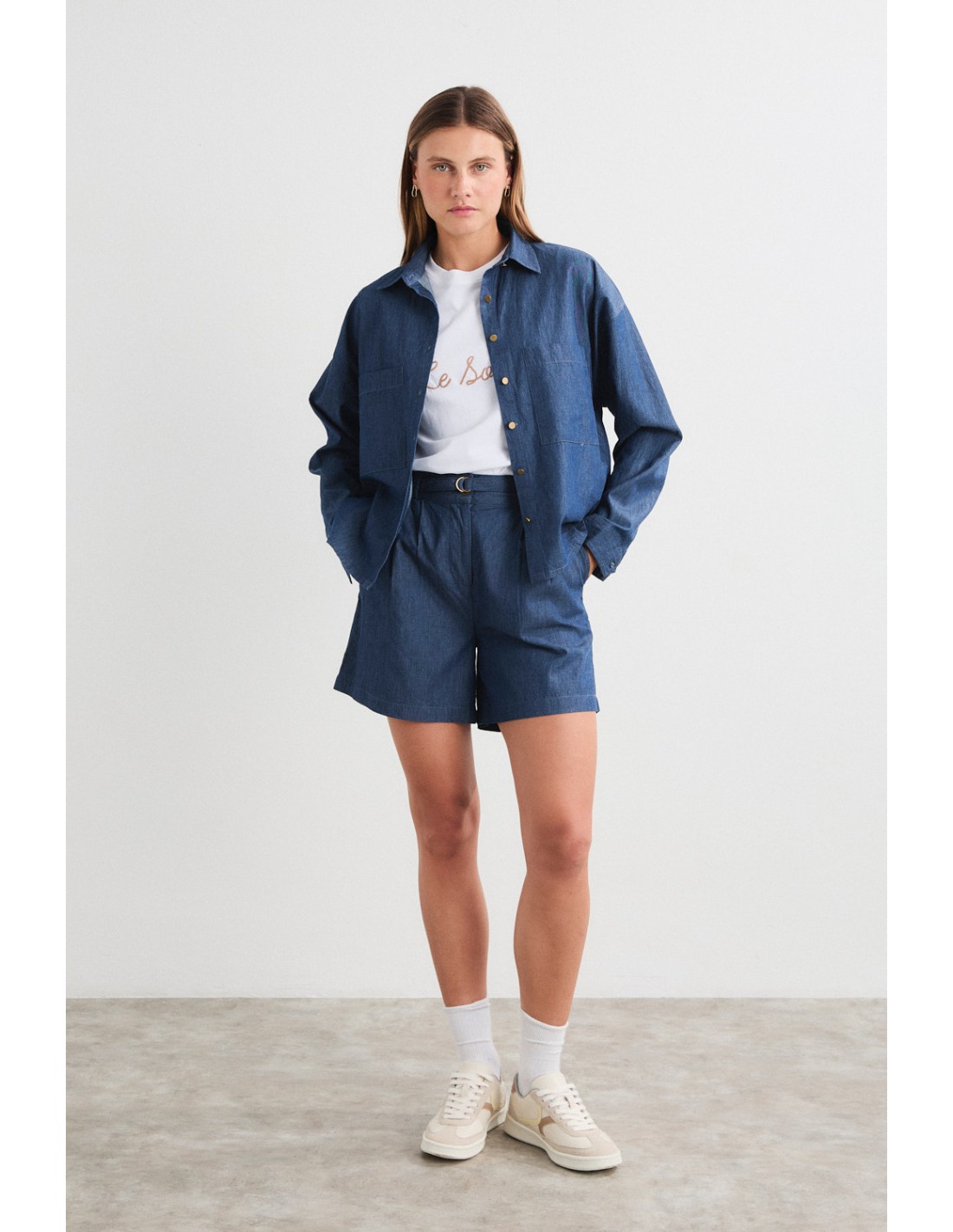 Chemise avec col à revers et fermeture boutonnée sur le devant, manches longues avec poignets ouverts et bouton au dos. Deux poches sur le devant et un empiècement au dos. Associez-la au pantalon ou au short Banten pour un look total sophistiqué, idéal pour les journées en ville.