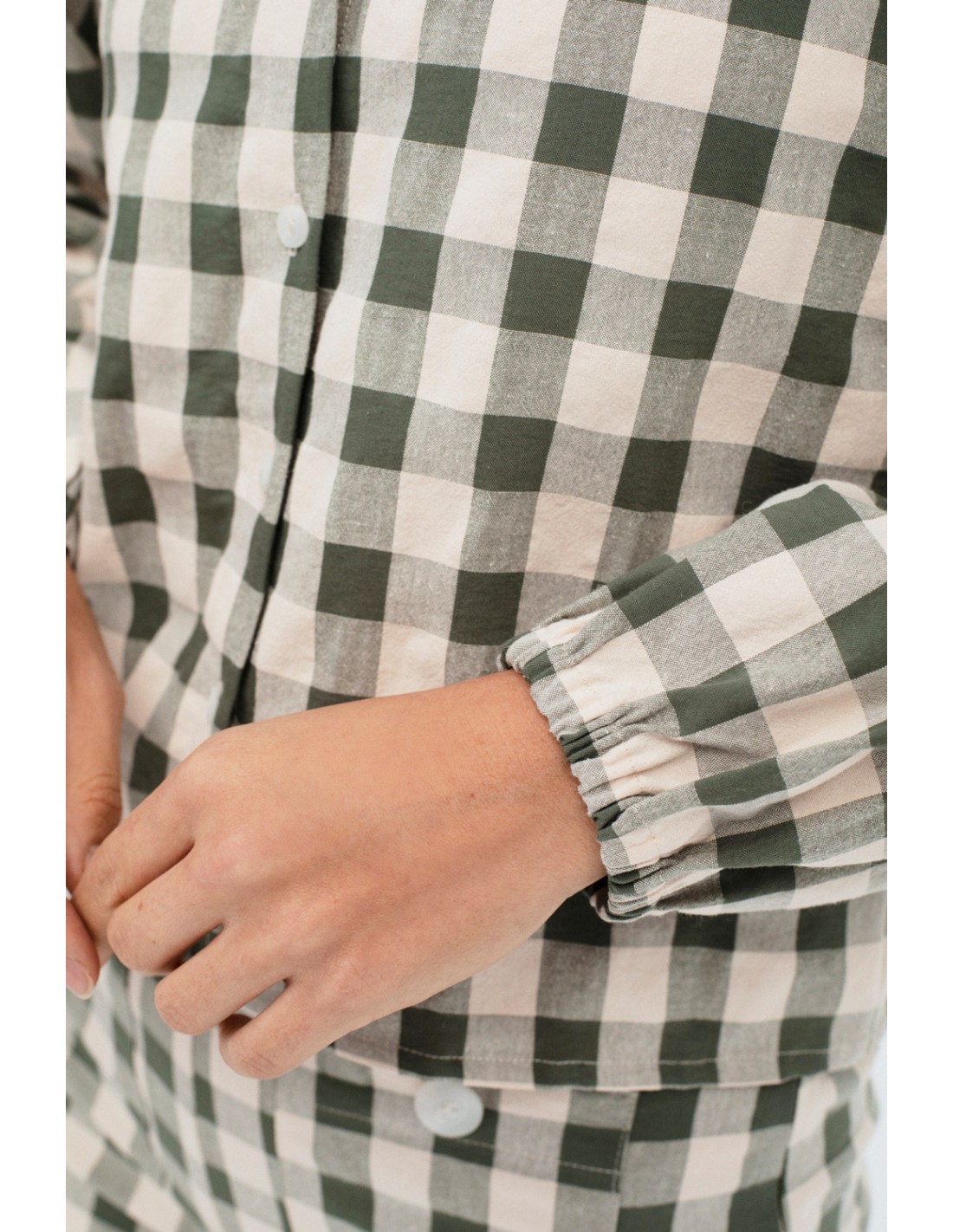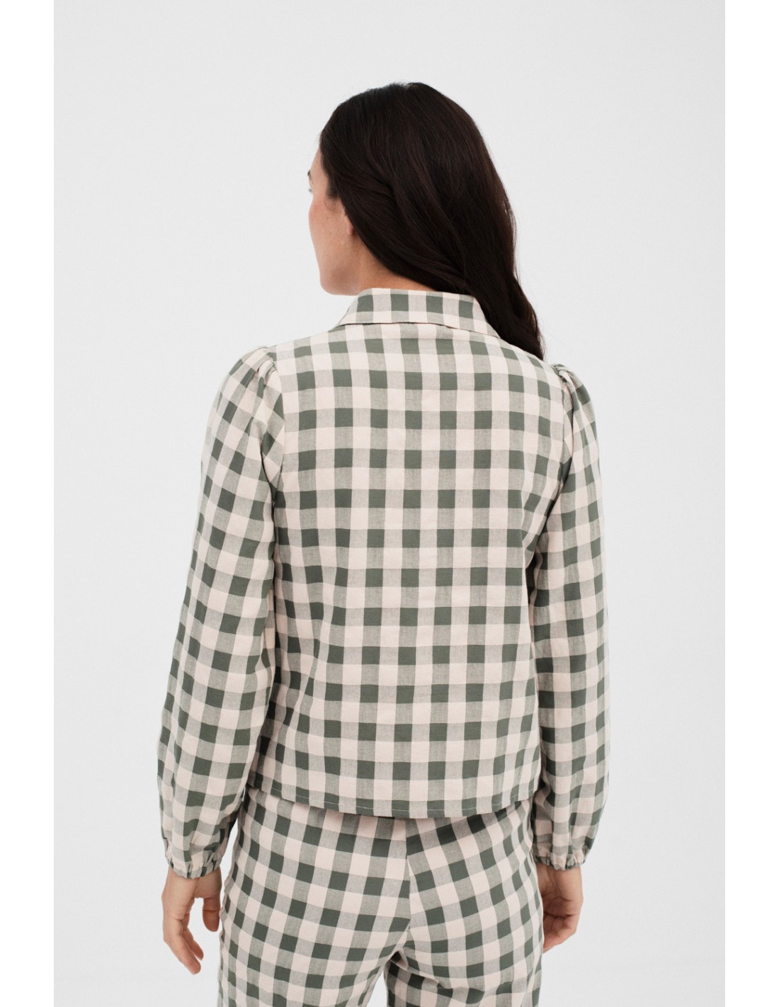 Chemise vichy avec col de chemise, boutons sur le devant et manches bouffantes avec élastique aux poignets. Associez-la à la jupe Marylebone ou au pantalon Malasaña pour un look complet.