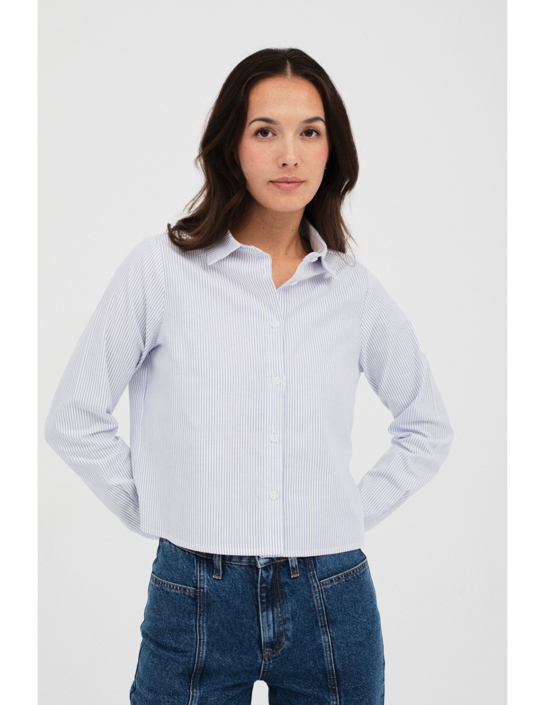 Chemise crop à manches longues, parfaite pour ajouter une touche moderne à votre tenue. Elle dispose d'un col de chemise avec boutonnage frontal et de poignets à bouton. Une pièce basique du dressing, idéale pour associer avec vos vêtements préférés.