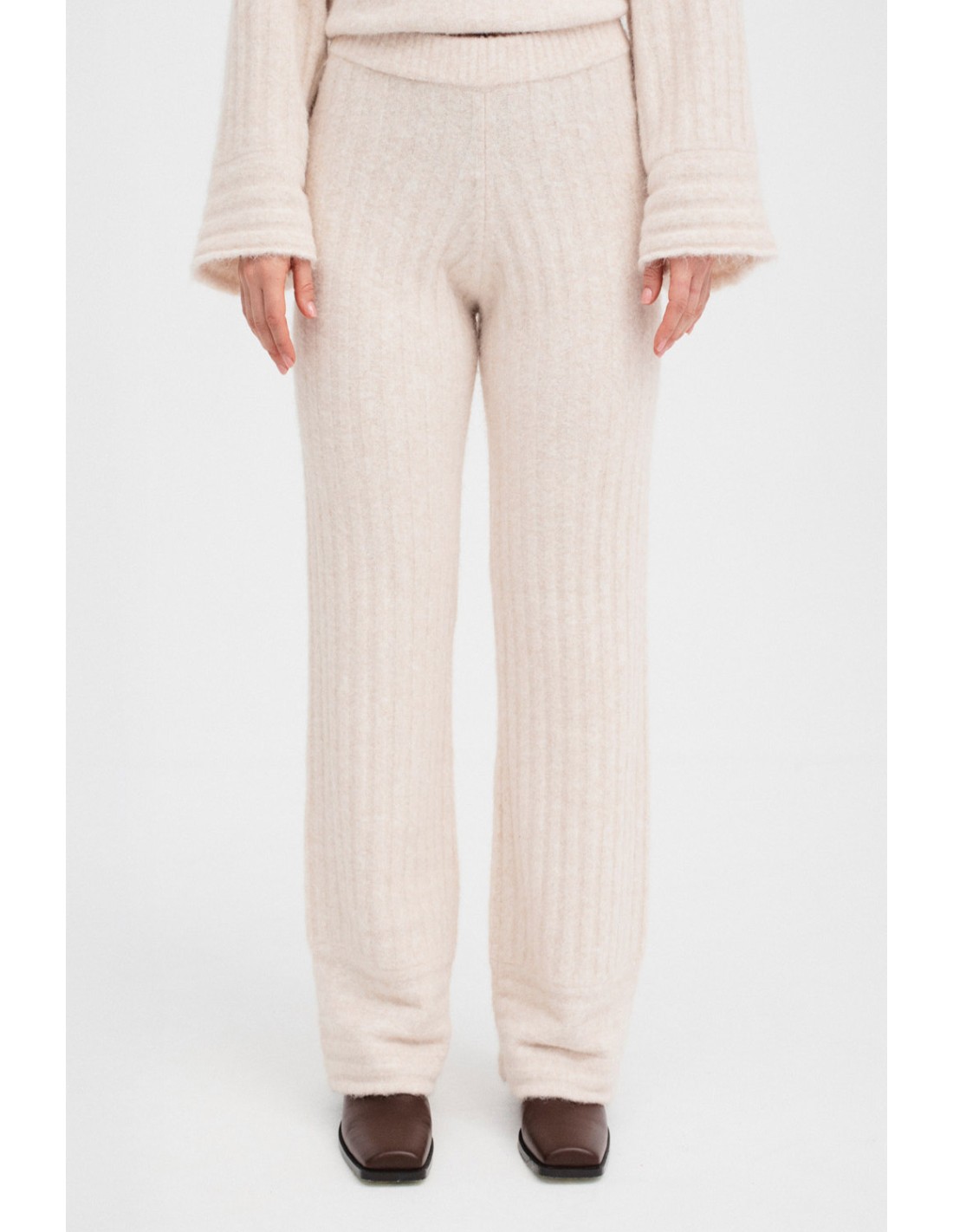 Pantalons en tricot côtelé, avec taille élastique pour un ajustement parfait. L'ourlet présente un élégant détail de côtes horizontales, ajoutant une touche moderne et élégante. Se combine parfaitement avec le pull Song et le cardigan Gangam pour un look complet.