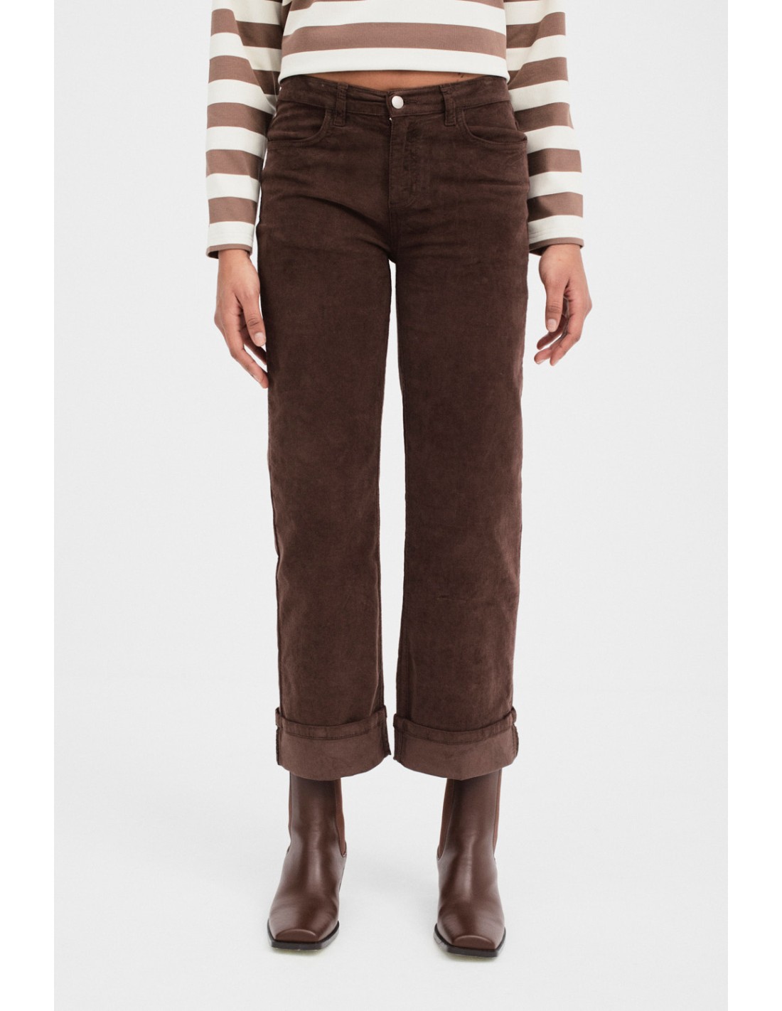 Pantalon en velours côtelé avec revers au bas, taille moyenne et coupe droite. Parfait pour être assorti à différents styles et occasions.