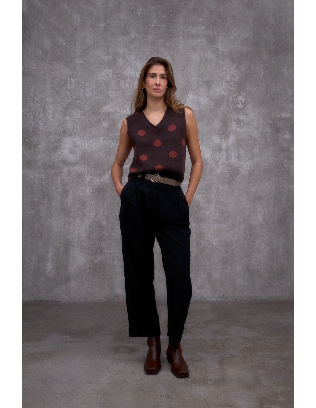 Gilet polo en maille avec col chemise et patte de boutonnage. Finitions côtelées aux emmanchures et à l'ourlet pour une touche raffinée et structurée.