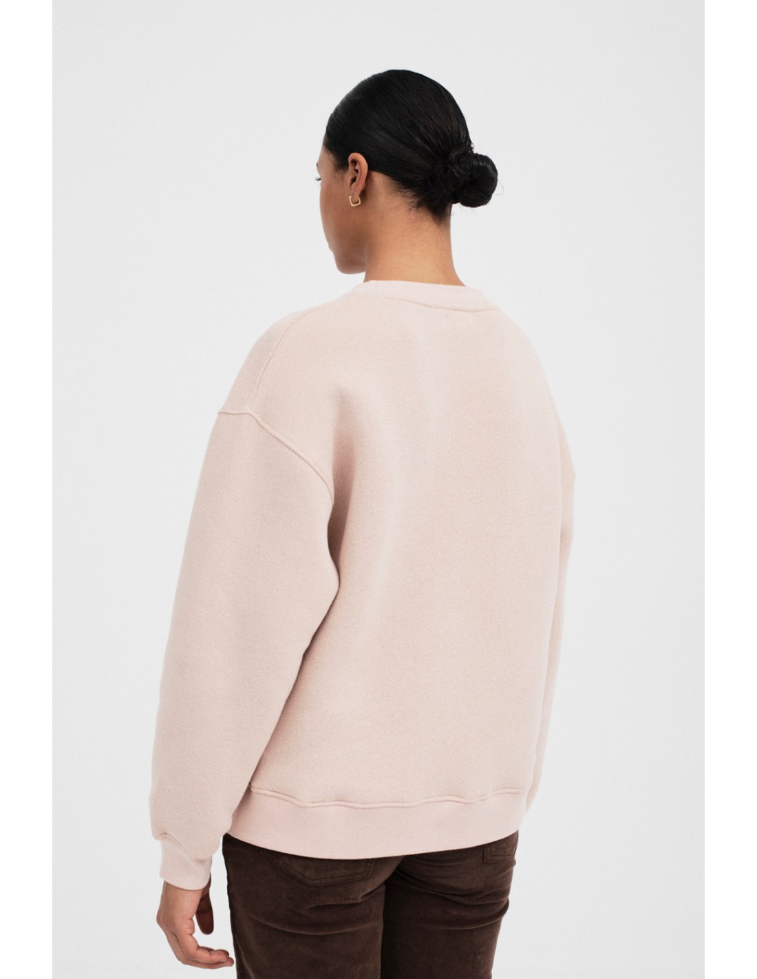 Enmore est un sweat-shirt de coupe oversize avec des manches larges et des poignets en bord-côte. Le col et les bas sont également en bord-côte, avec un subtil logo brodé de Mus&Bombon ton sur ton.
