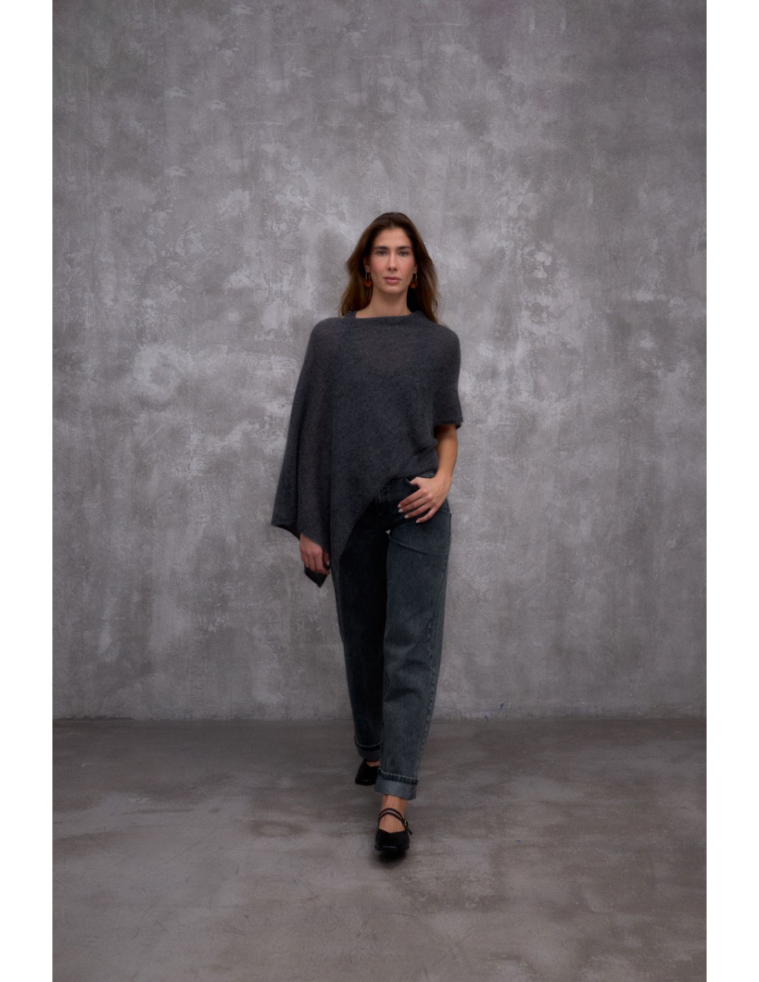 Cape en maille métallisée à col rond et finitions soignées pour un style sophistiqué et moderne. Une pièce polyvalente, idéale à superposer sur le top Trast ou le pull Stone.