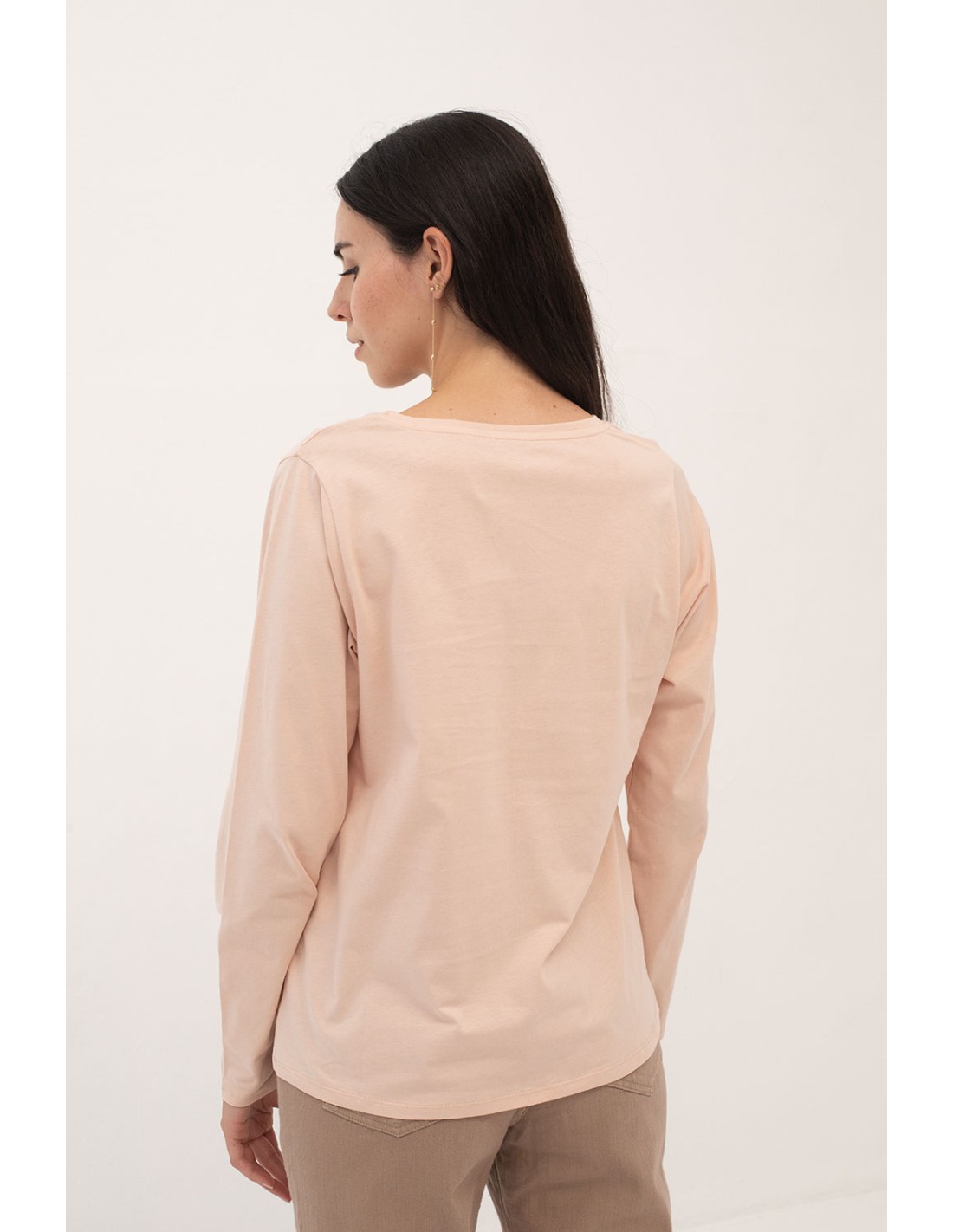 Un basique intemporel. Avec des manches longues, une encolure en V et des détails à double charge sur le devant et dans le dos.