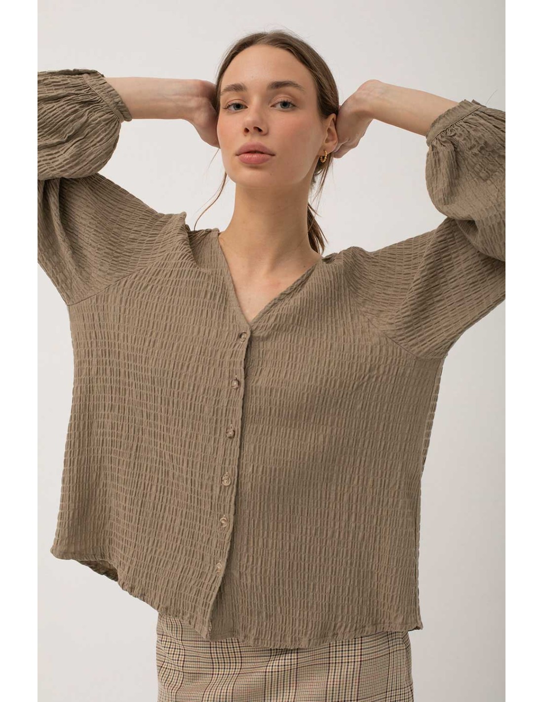 La blouse Isna, avec son design fluide et ses volants aux poignets et à l''encolure, vous séduira par son tissu gaufré et sa touche particulière. Si vous aimez ce chemisier, ne manquez pas la robe Insua.