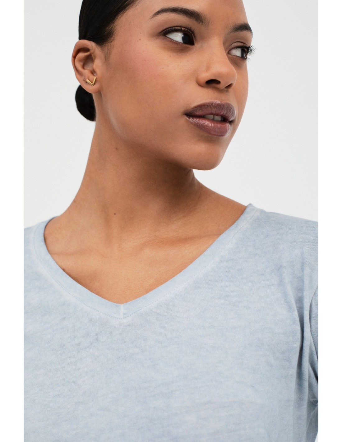 Louis est un t-shirt à manches longues au design droit et teinté avec des colorants végétaux. Avec son col en V et ses finitions simples, il est confortable et parfait pour un look décontracté.