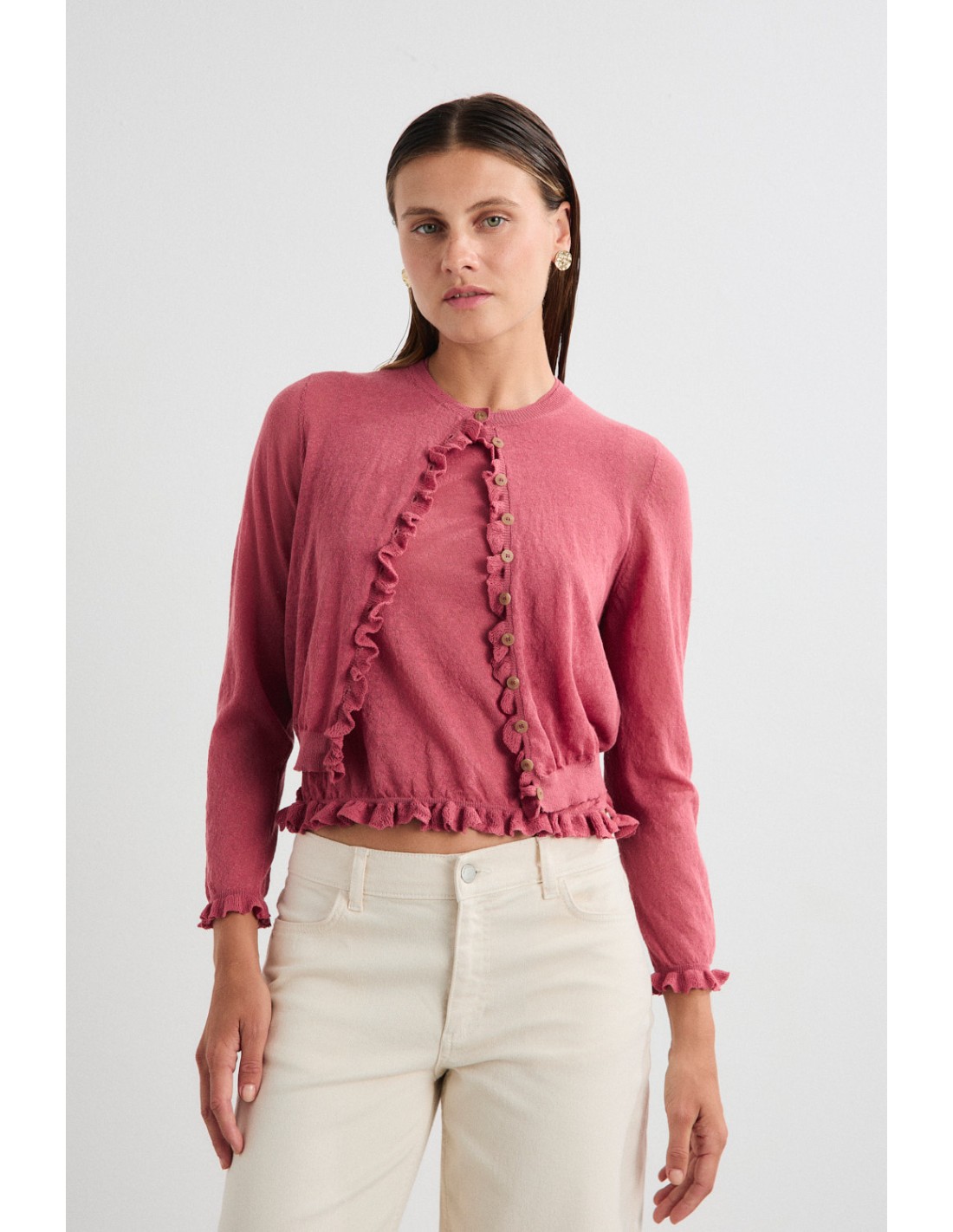 Top en tricot avec mini-volant à l'ourlet et col ras du cou côtelé. Associez-le au cardigan Mirri pour un total look moderne et romantique.