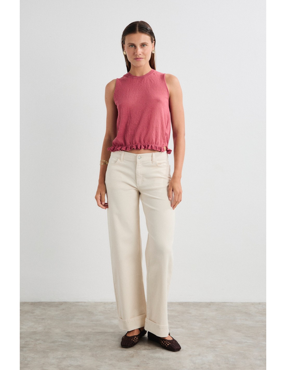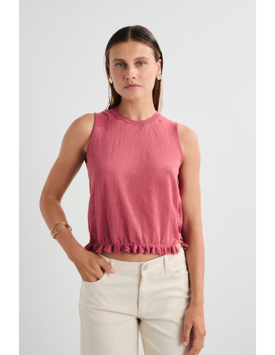 Top en tricot avec mini-volant à l'ourlet et col ras du cou côtelé. Associez-le au cardigan Mirri pour un total look moderne et romantique.