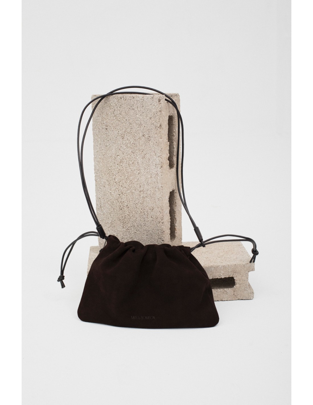 Cross body bag with adjustable handle and drawstring closure. On the inside it has a pocket with leather trim and another zipped pocket. Mus&Bombon logo engraved on the outside.