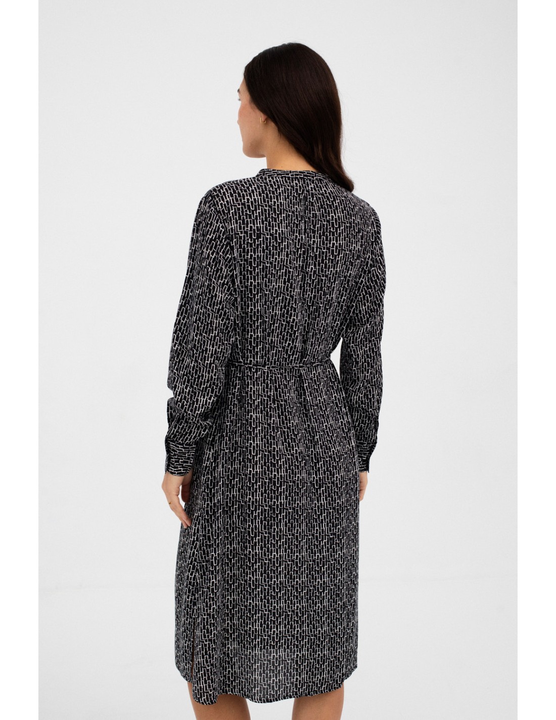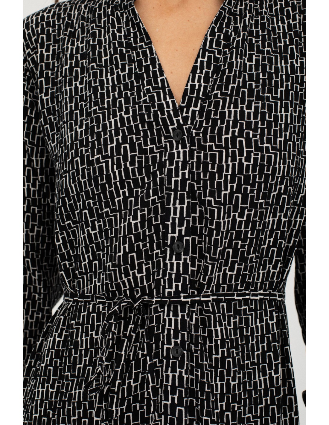 Printed shirt dress with long sleeves, mao collar and side slits. Includes a removable belt, perfect for a versatile and stylish look.