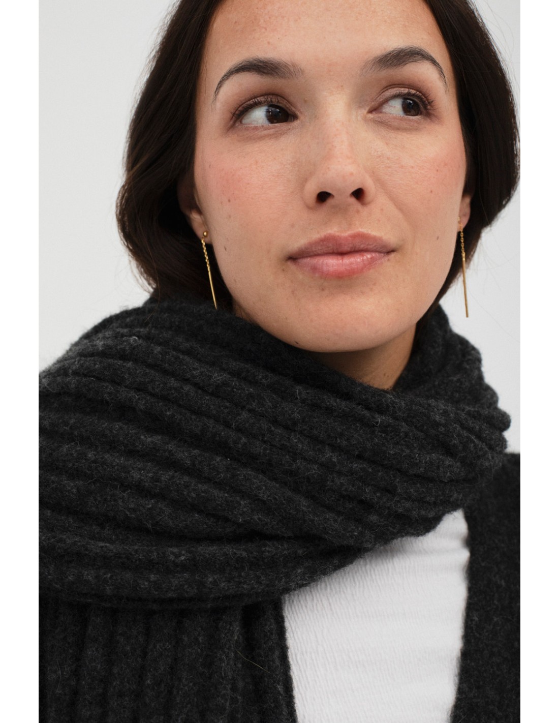 Knitted scarf with a ribbed body and an elegant horizontal ribbed finish on the edges, which gives it a sophisticated and unique touch. Combines with Song, Nowon and Gangam garments as well as the Busan accessory.