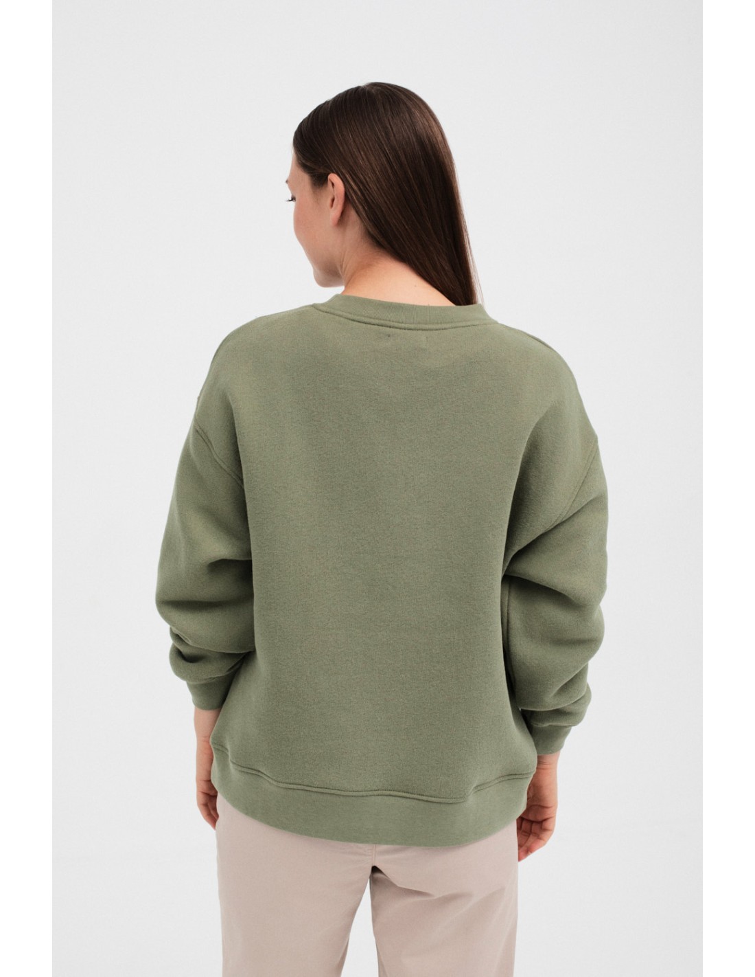 Enmore is an oversized sweatshirt with wide sleeves and ribbed cuffs. The collar and hem are also ribbed, with subtle embroidery of the Mus&Bombon logo in tone-on-tone.