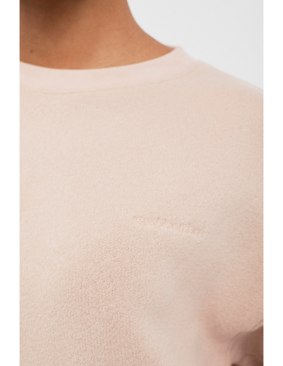 Enmore is an oversized sweatshirt with wide sleeves and ribbed cuffs. The collar and hem are also ribbed, with subtle embroidery of the Mus&Bombon logo in tone-on-tone.