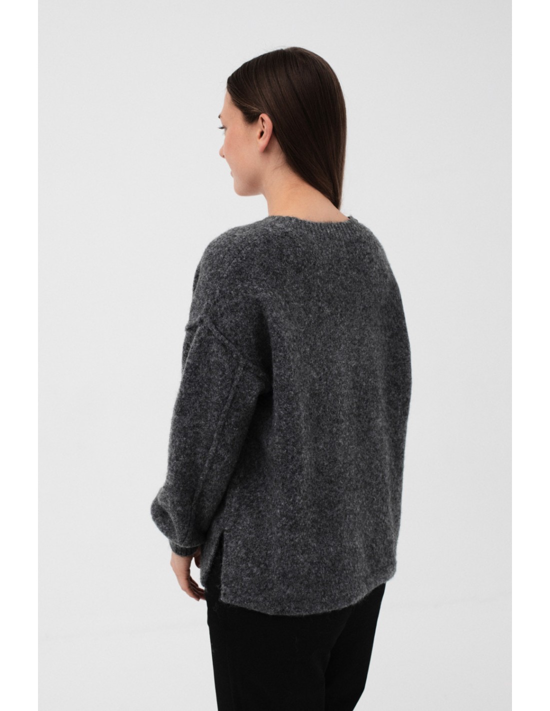 V-neck jumper with a false opening with buttons and ribbed cuffs, giving it a unique and versatile twist.