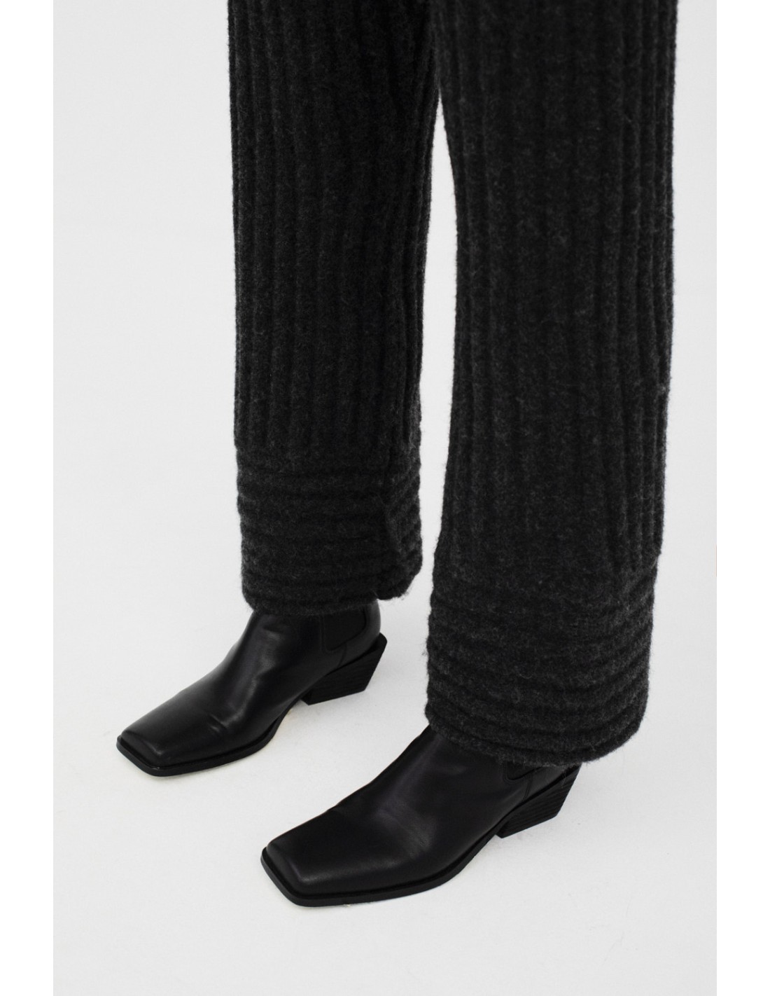Ribbed, knitted trousers, with an elasticated waistband for a perfect fit. The hem is detailed with stylish horizontal ribbing, adding a modern and elegant detail. Pair them perfectly with the Song jumper and Gangam cardigan for a complete look.