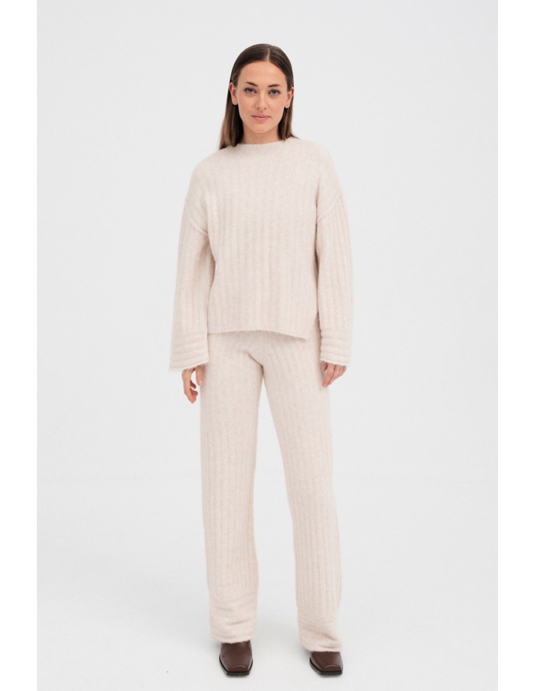 Ribbed, knitted trousers, with an elasticated waistband for a perfect fit. The hem is detailed with stylish horizontal ribbing, adding a modern and elegant detail. Pair them perfectly with the Song jumper and Gangam cardigan for a complete look.