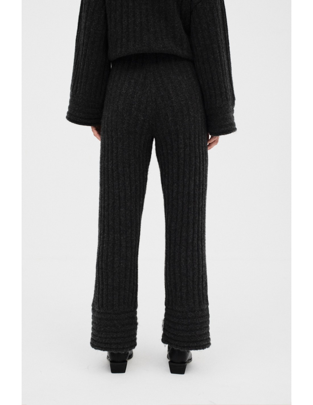 Ribbed, knitted trousers, with an elasticated waistband for a perfect fit. The hem is detailed with stylish horizontal ribbing, adding a modern and elegant detail. Pair them perfectly with the Song jumper and Gangam cardigan for a complete look.