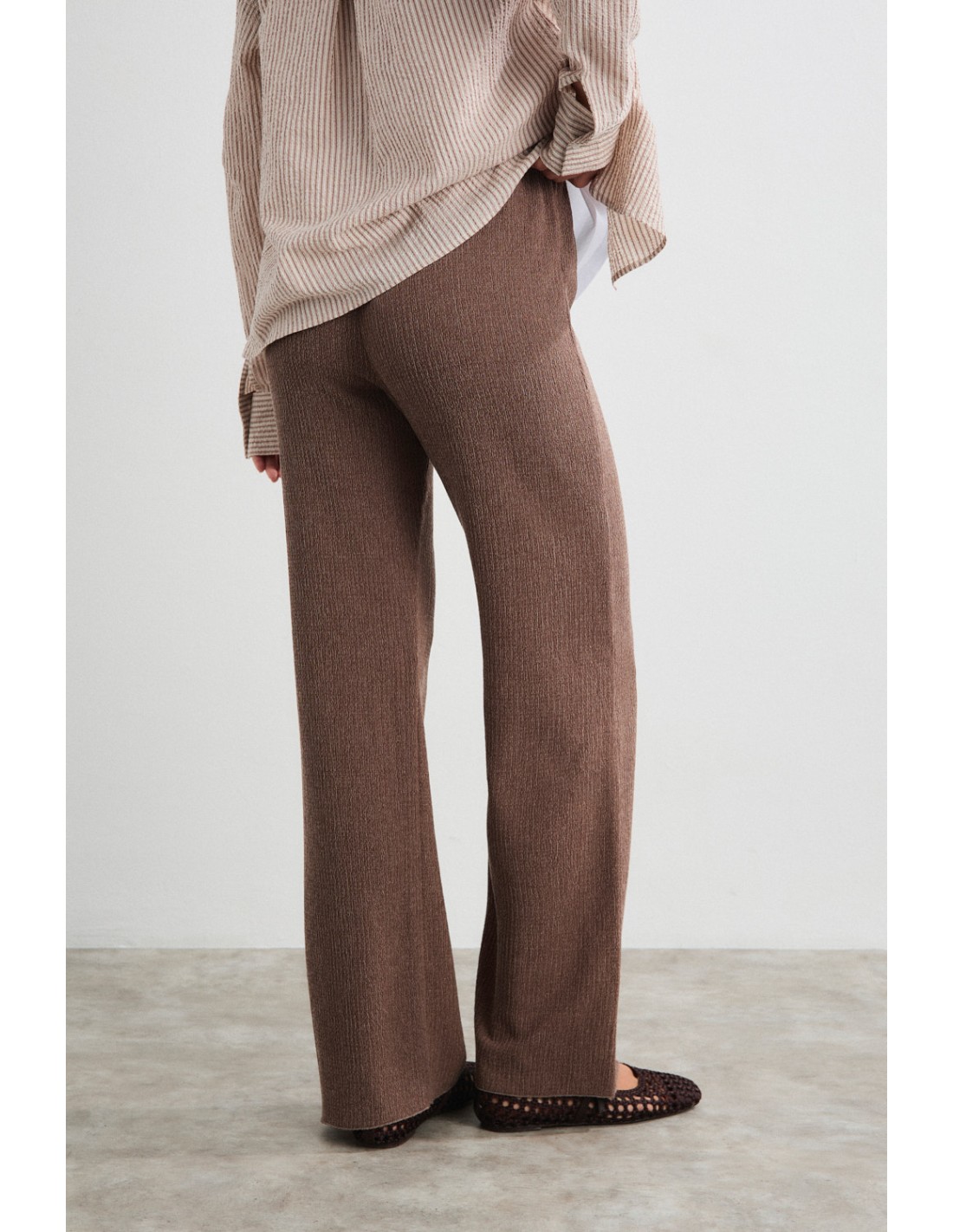 Textured fabric trousers with inner elasticated waistband for added comfort. Combine with the Liora T-shirt for an elegant total look. Also available in the Liora dress in the same fabric.