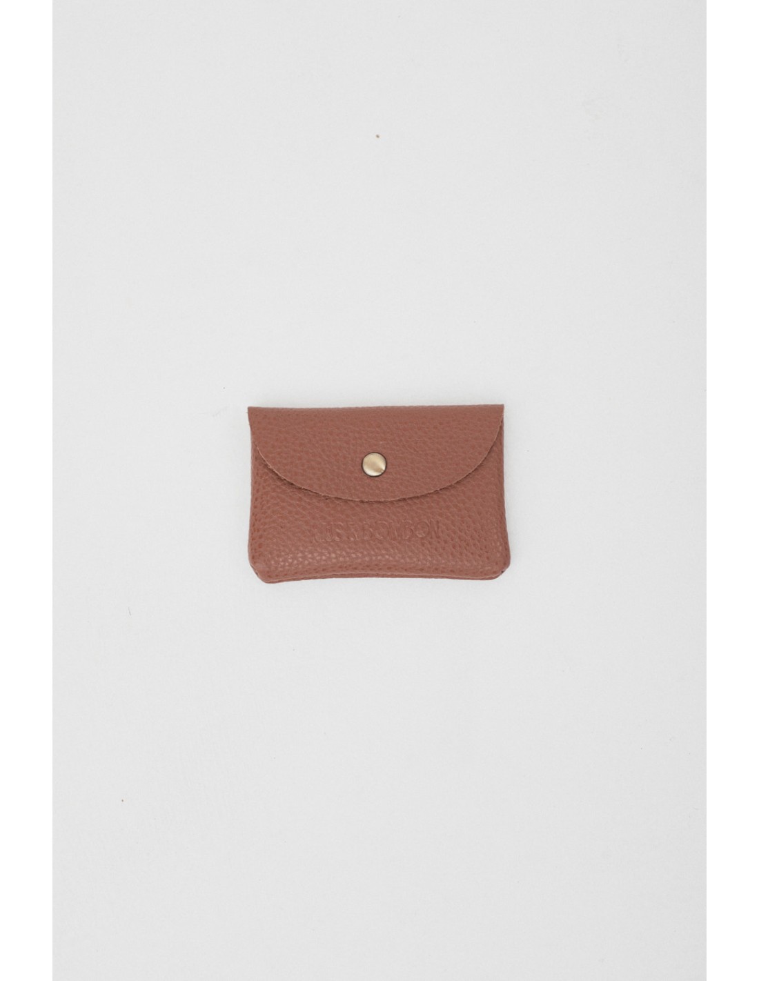 Small leather purse with a snap button closure in the centre. It has the Mus&Bombon logo engraved on the outside.