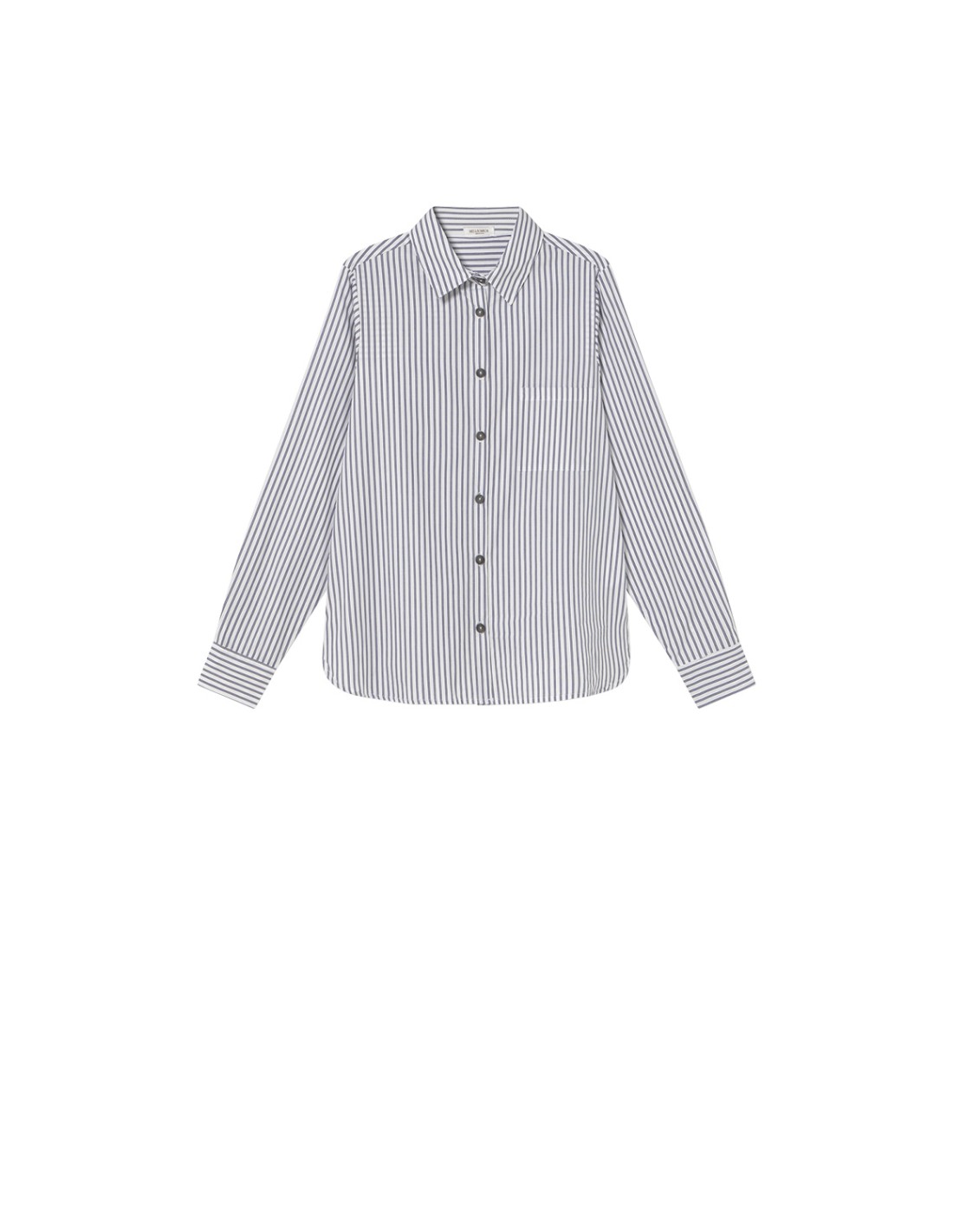 A striped cotton shirt with a shirt collar, yoke and chest pocket. It has side slits and double button cuffs. Perfect for the office.