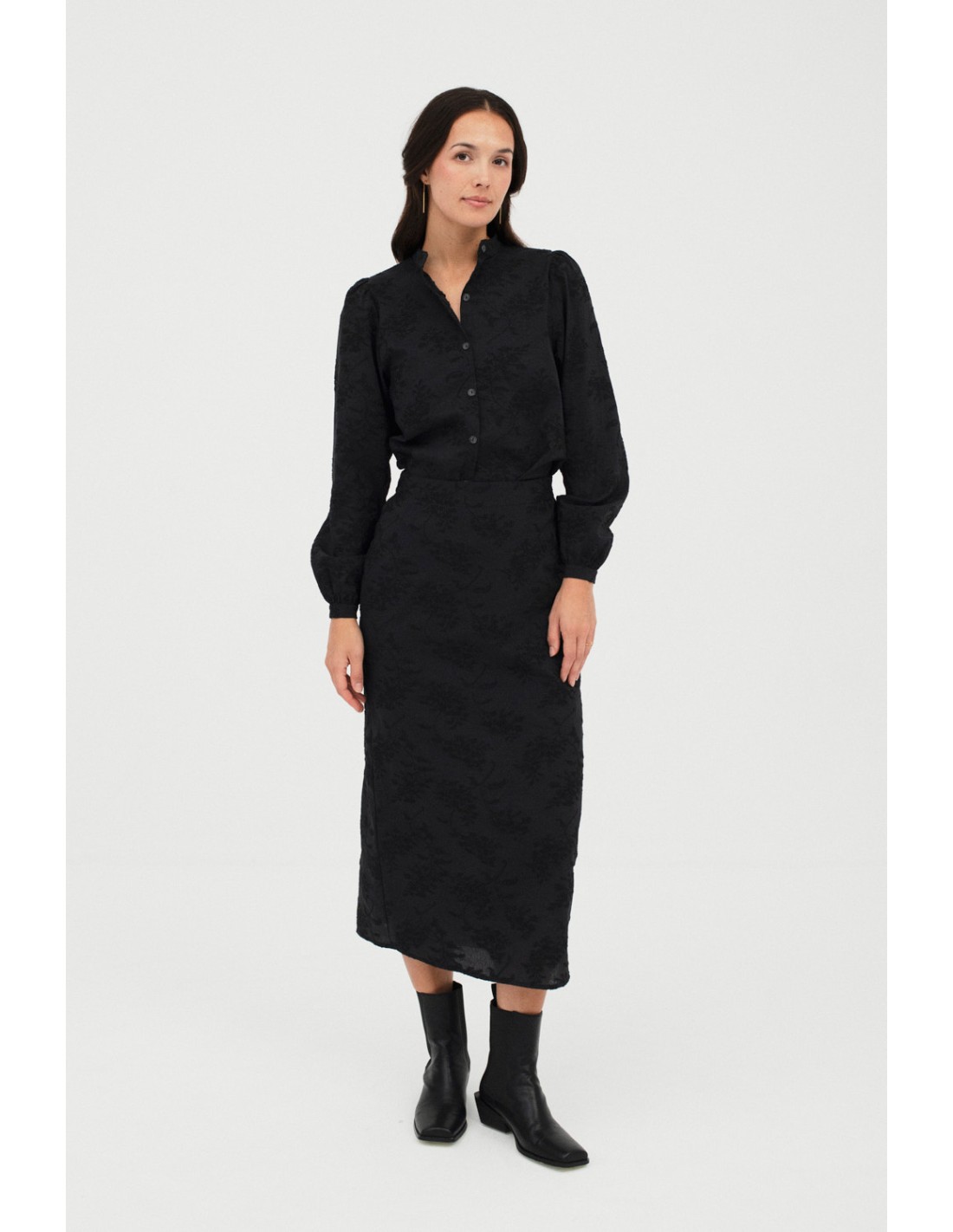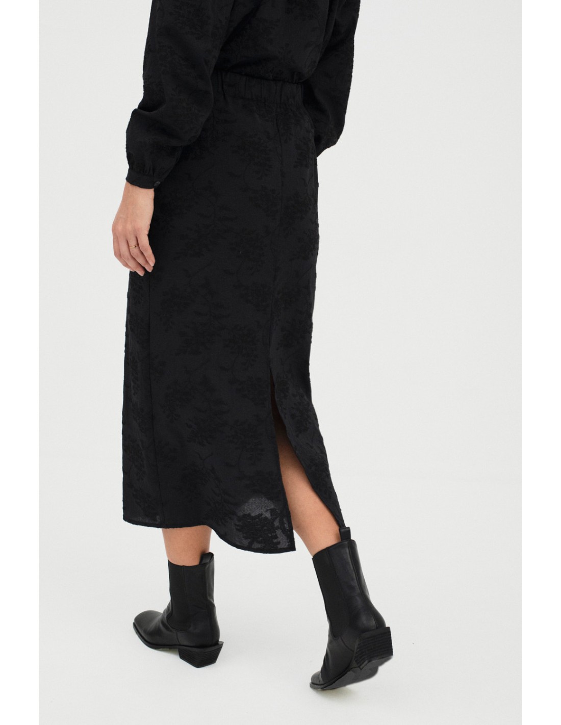 Saikun is a jacquard midi skirt with zipper closure, flat back elastic and inner lining. Combine with Sololaki for a total look.