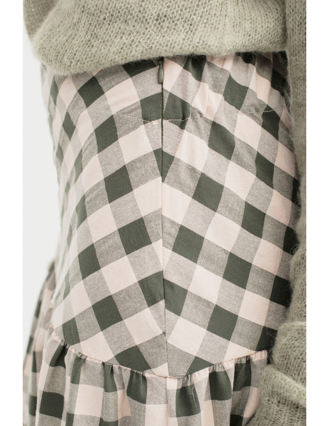Vichy long skirt with a fitted yoke and a hip-length flounce, invisible zip fastening at the side and flat elastic at the back. Combine it with the Marlene blouse and the Whitehall bag.