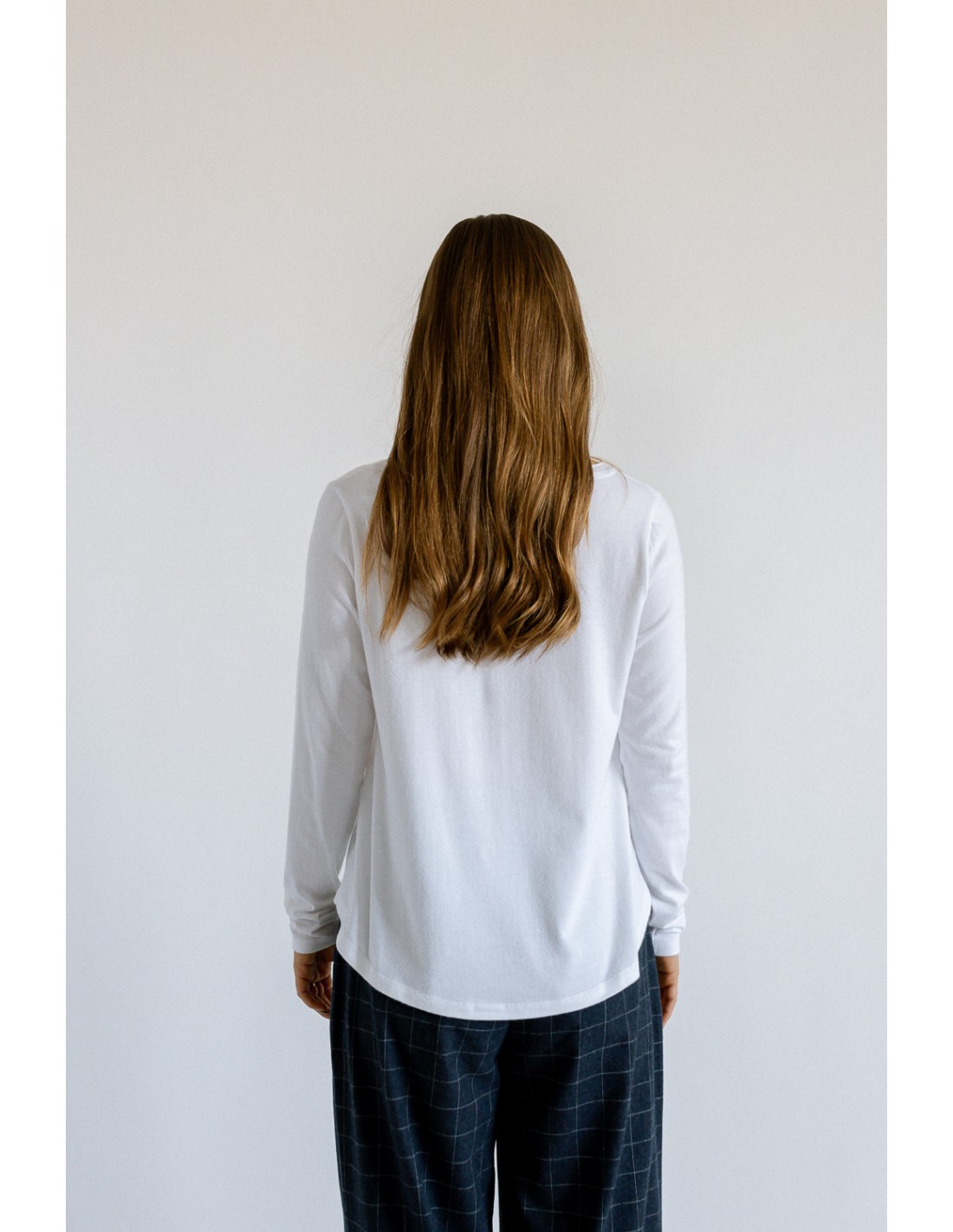 Basic T-shirt with boat neck and long sleeves, with rounded hem.