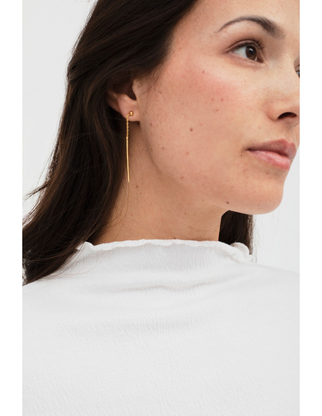 Lightweight, long-sleeved T-shirt with a swan neck. Its soft texture and the details in the finishes give it a unique and modern touch.