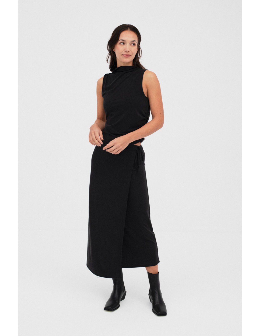 Top with cupro effect, featuring a diagonal neckline and ruched details at the shoulder and waist. Ideal for an elegant look, it combines with the Spital skirt.