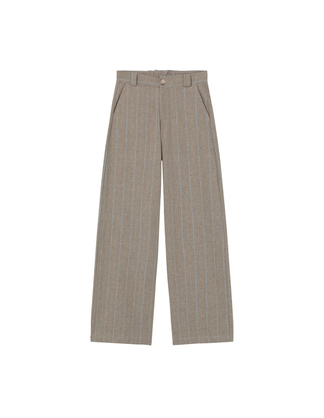 Discover the elegance and comfort of our pinstripe trousers. With a low rise and a wide cut, they fasten with a fly and have a flat elasticated waistband at the back. Match with the Zoloti waistcoat.