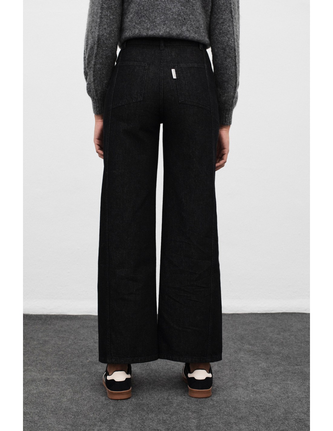 Wide-cut, high-waisted denim trousers with centre seams for a sleek, modern fit.