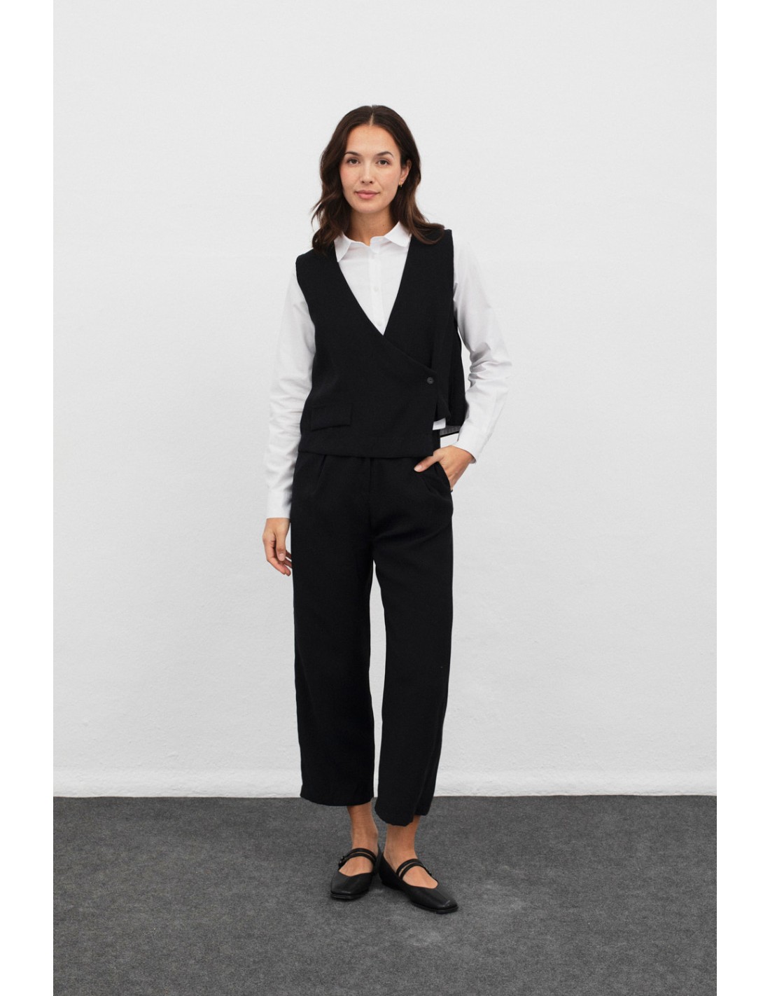 Our elegant tencel trousers, designed for comfort and style with subtle details such as pleats in the front and darts in the back. Combines with Bergedorf or Deich.